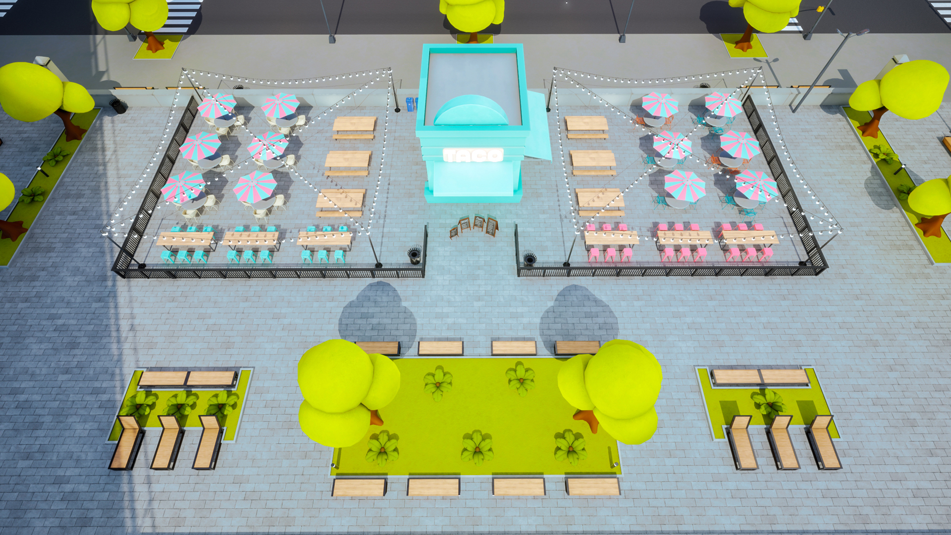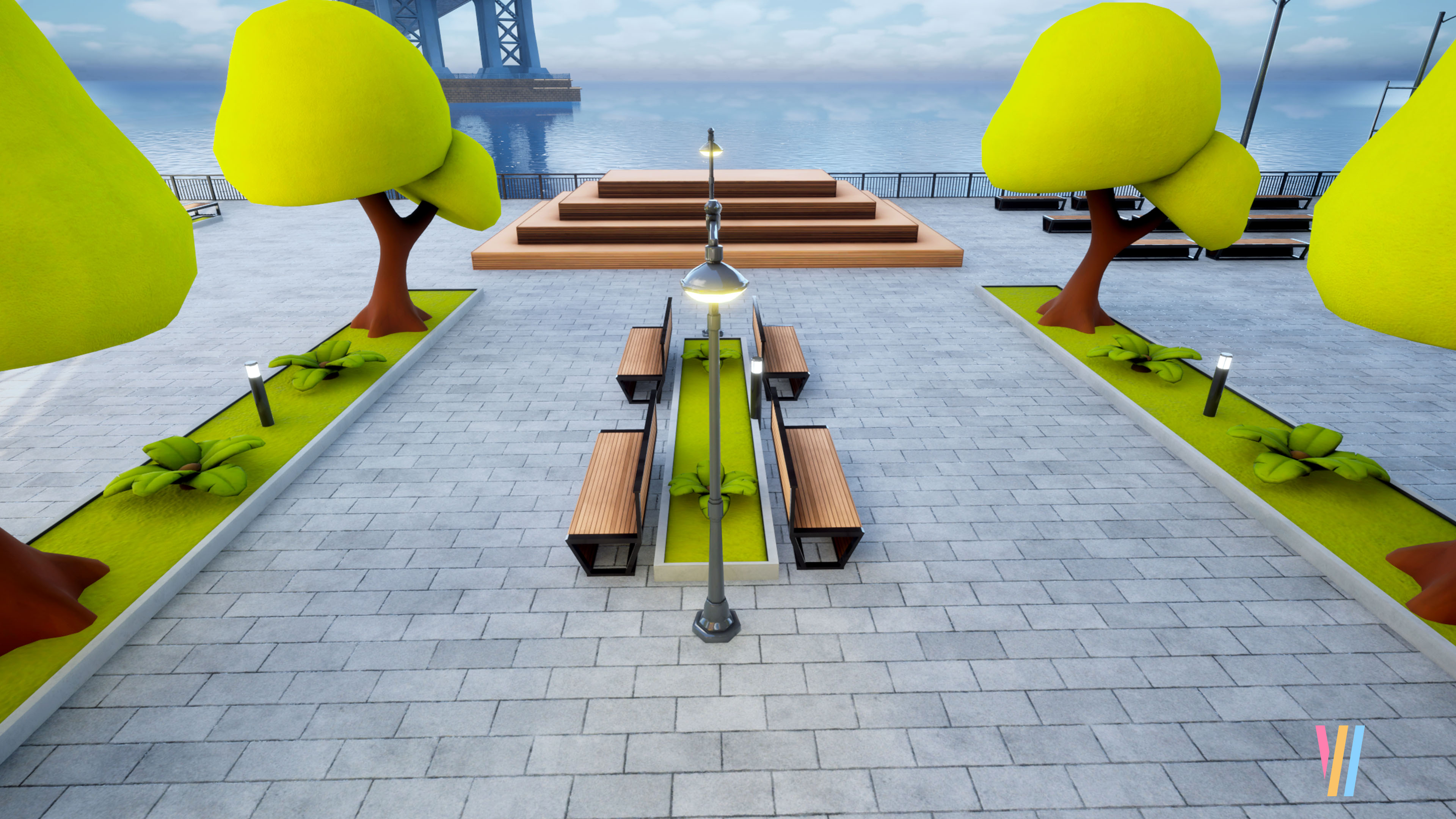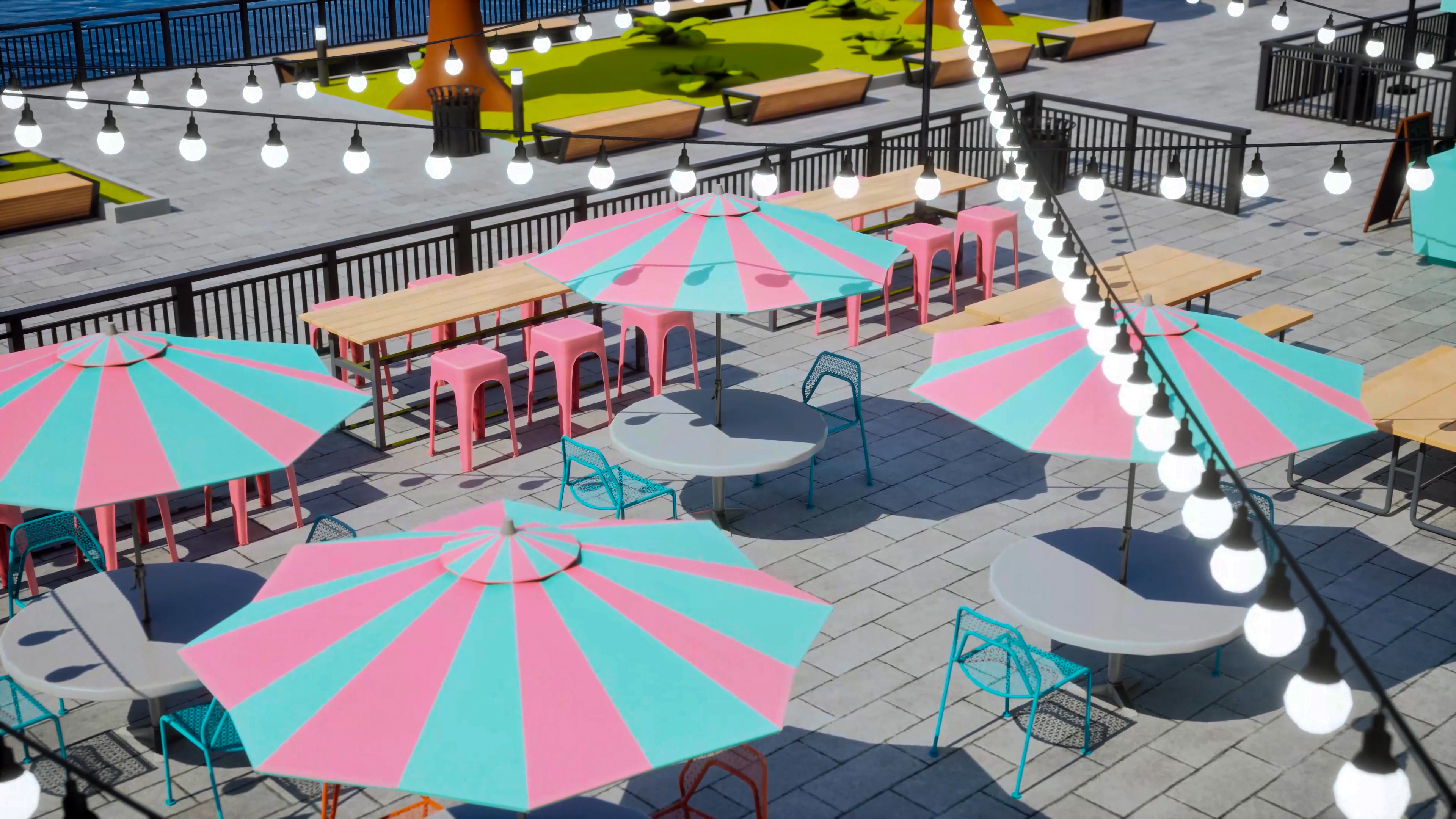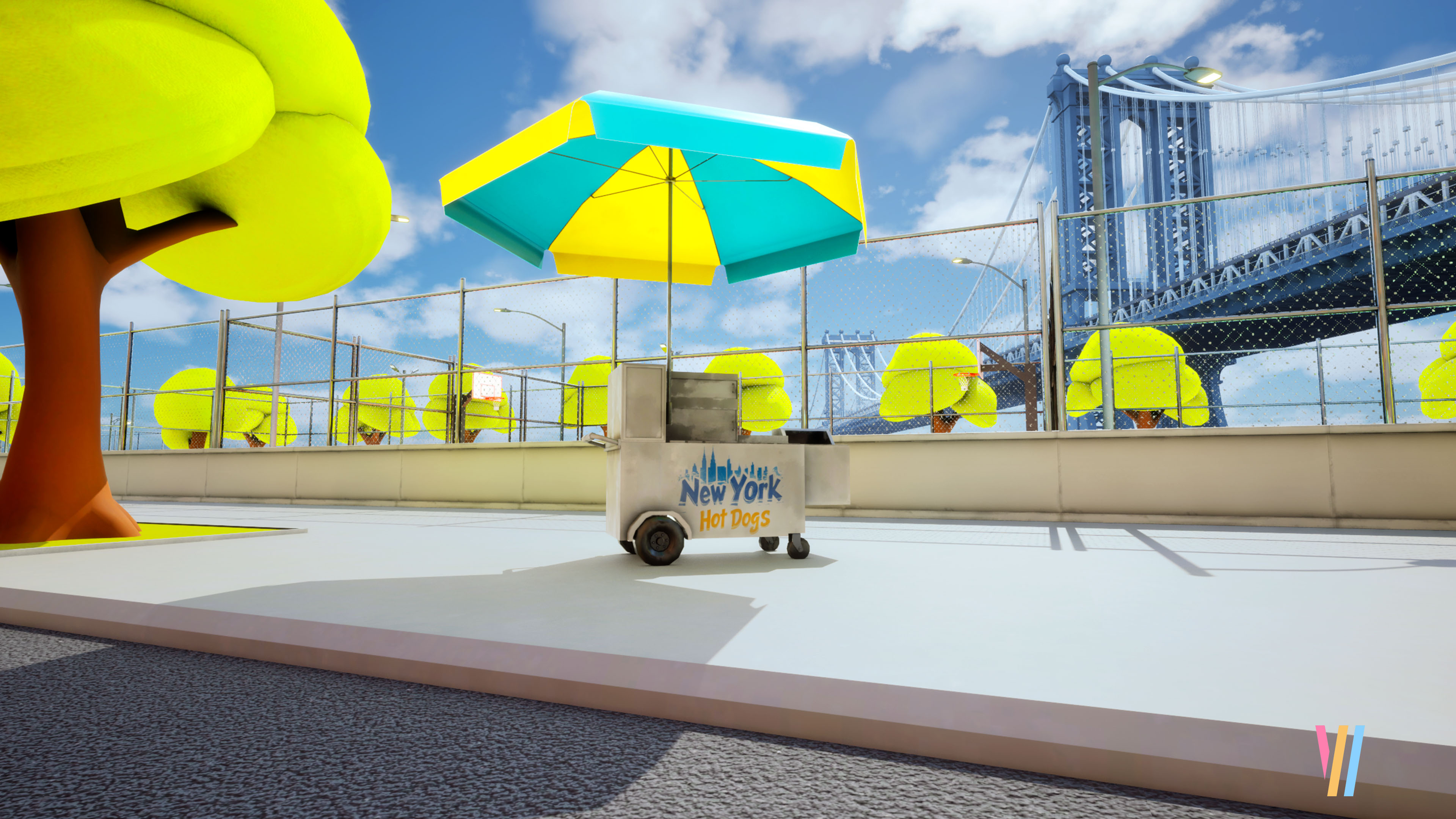 Dumbo Park was inspired by my earlier Stylized Pizza Truck concept, expanding it into a lively, stylized urban scene based on New York’s Dumbo neighborhood.